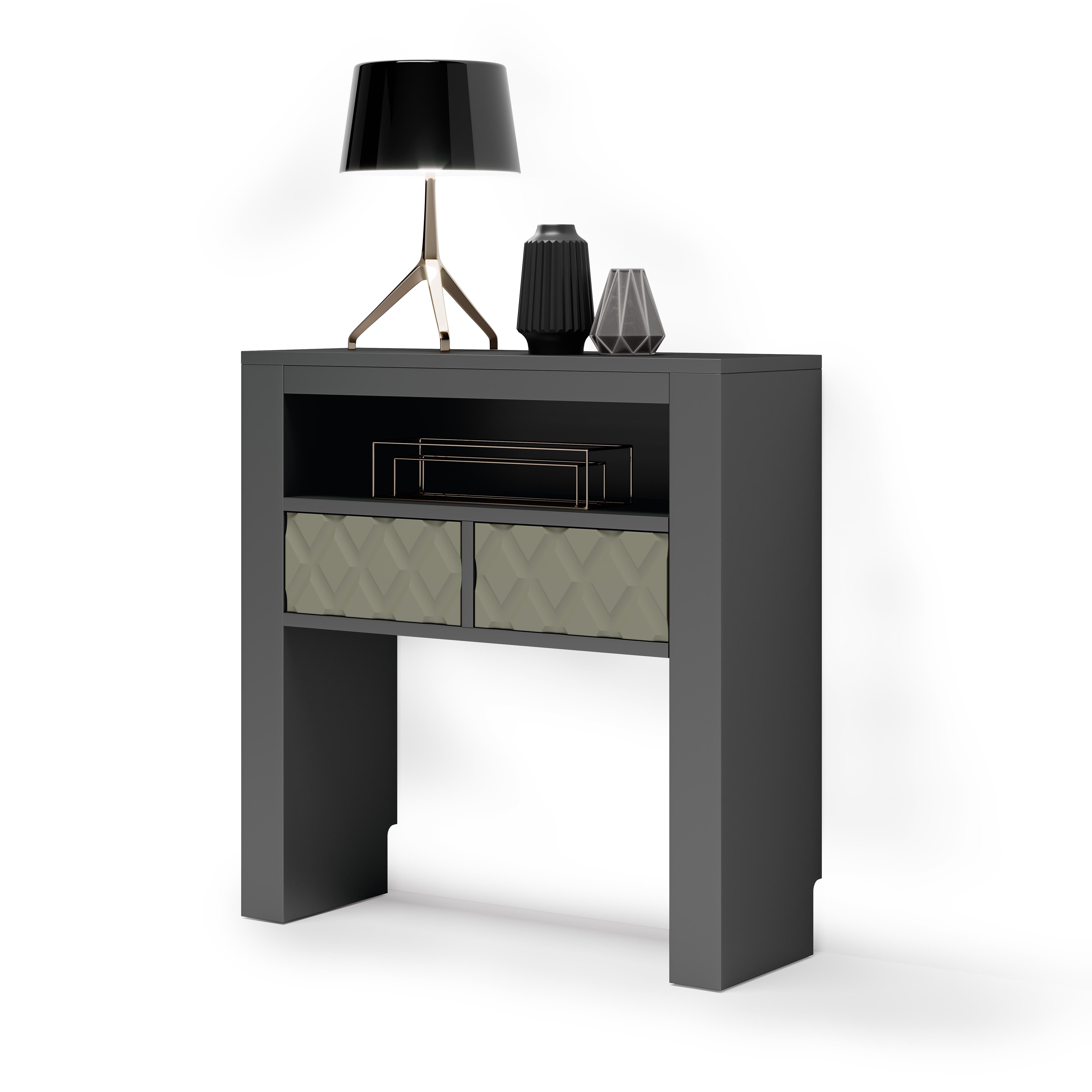Console laquée 2 tiroirs 1 niche