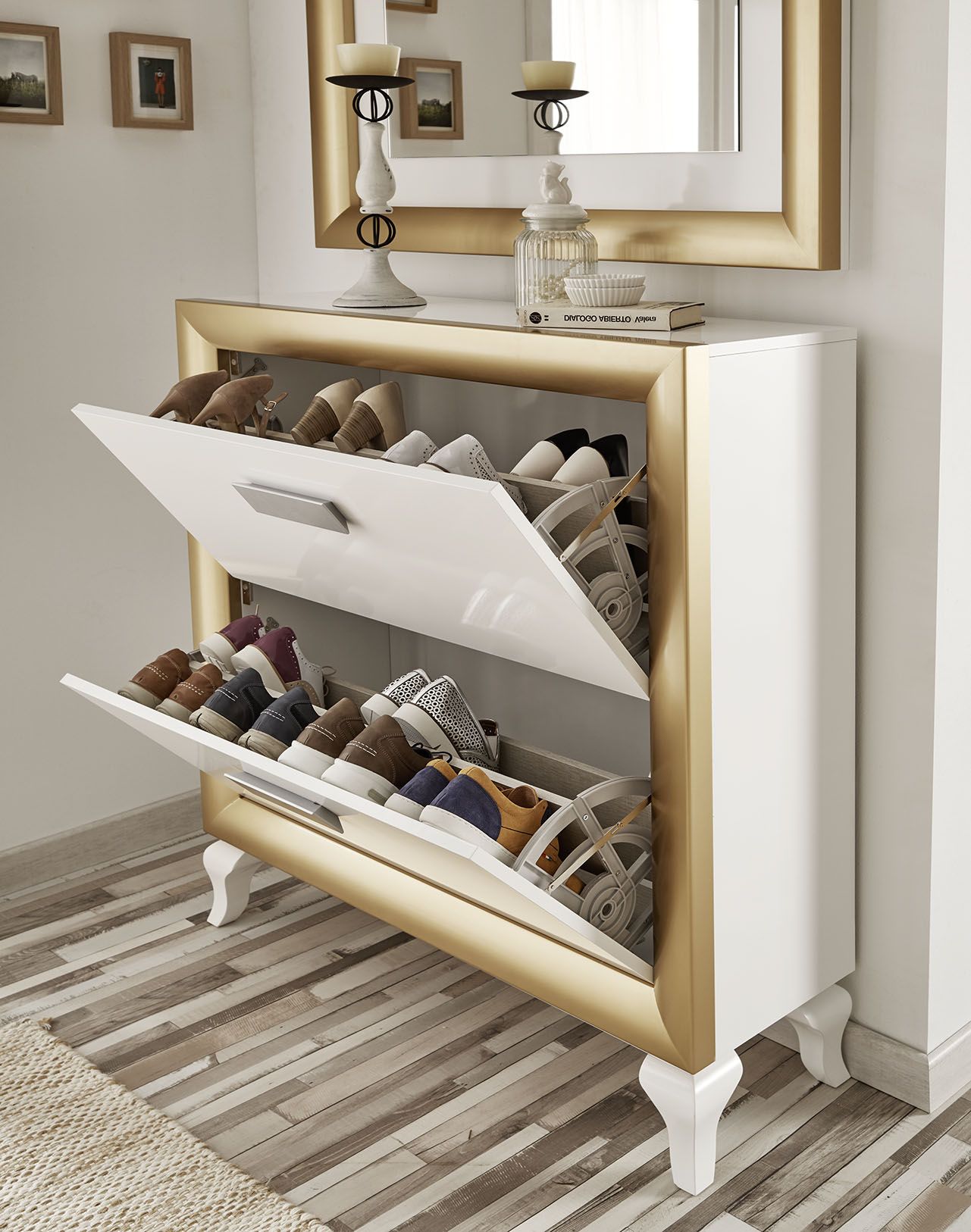 Meuble à chaussure haut 1 porte miroir 1 porte pleine