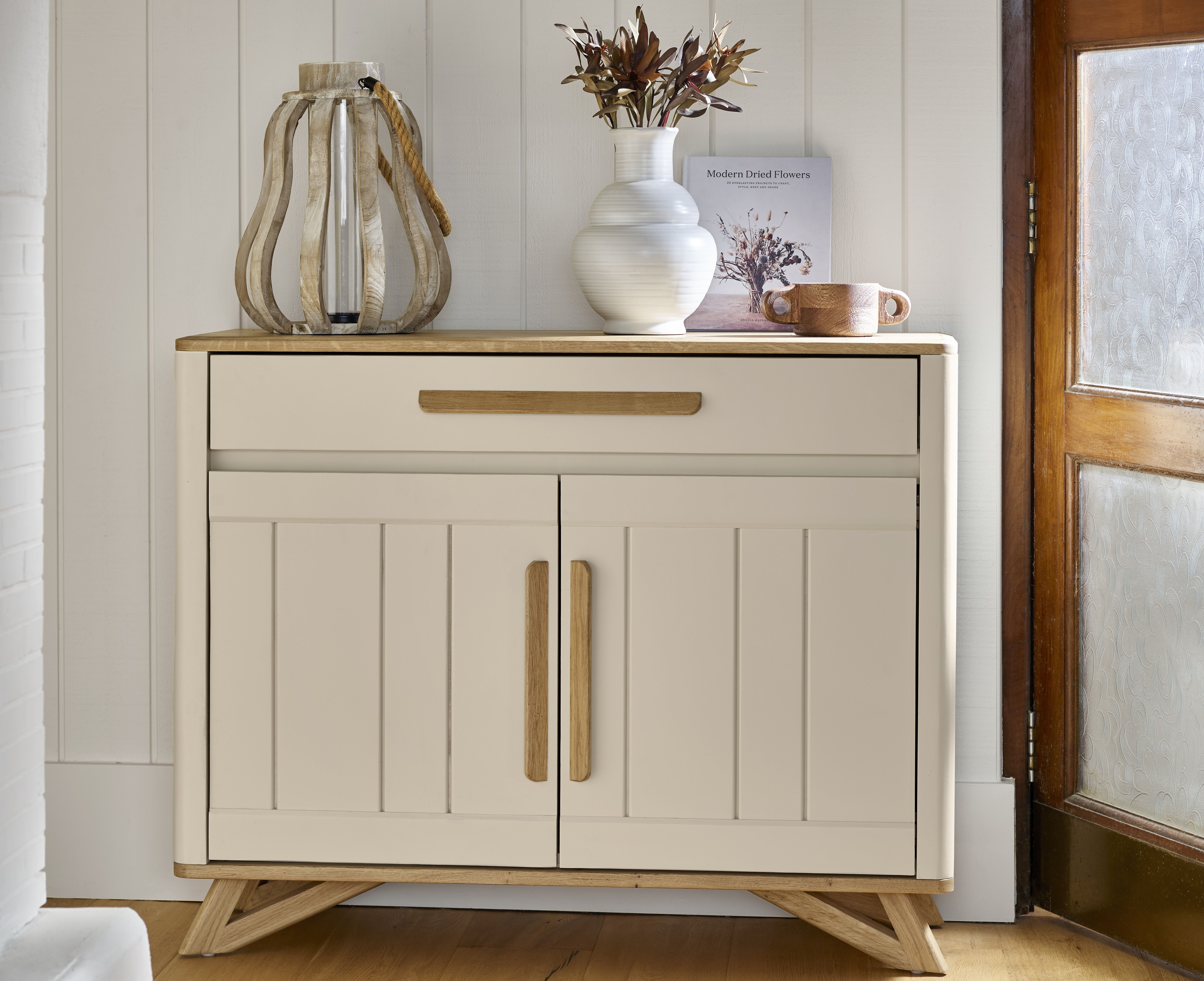 Meuble d'entrée bas 2 portes 1 tiroir design scandinave