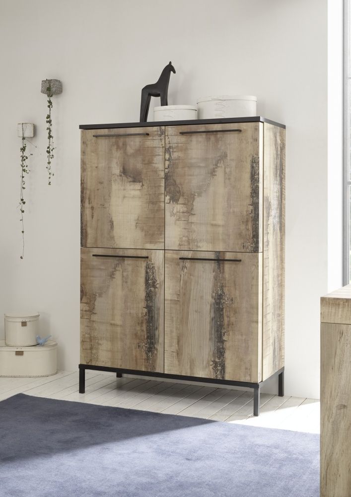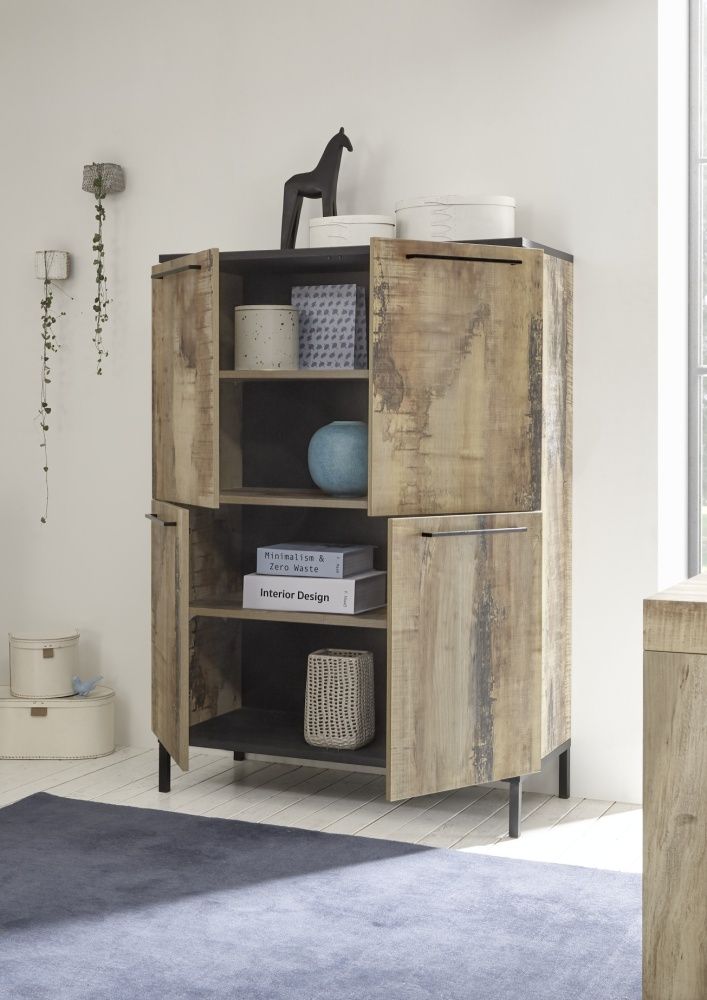 Apportez un meuble de rangement avec du cachet, dans votre intérieur, grâce à ce modèle 4 portes en finition chêne bois brûlé et noir mat. Il allie élégance et modernité pour trouver aisement sa place aux côtés de meubles de style design, industriel, authentique ou vintage. Sa grande capacité de rangement avec 4 rayonnages pratiques saura être appréciée dans les pièces de la maison où vous manquez de rangement : l'entrée, le salon, la salle à manger ou encore le bureau. Il pourra être associé avec le meuble TV, l'enfilade ou la table de la même collection