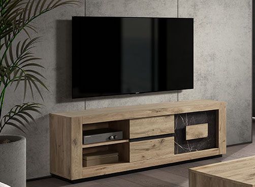 Vous cherchez à créer une atmosphère cozy et chaleureuse dans votre salon ? Avec le canapé, le meuble TV est un indispensable de la pièce. Ce modèle en finition chêne naturel avec une touche design crée par l'insert imitation marbre devrait vous plaire ! En plus, il offre un grand espace de rangement très pratique. La niche pourra servir pour installer les appareils électroniques. Derrière les 2 portes vous trouverez 4 espaces de rangement pour les télécommandes, les livres et autres objets high-tech. Après 1h00 de route depuis Champagnol, Besançon ou Dijon, notre équipe vous accueillera avec le sourire autour d'un café gourmand.