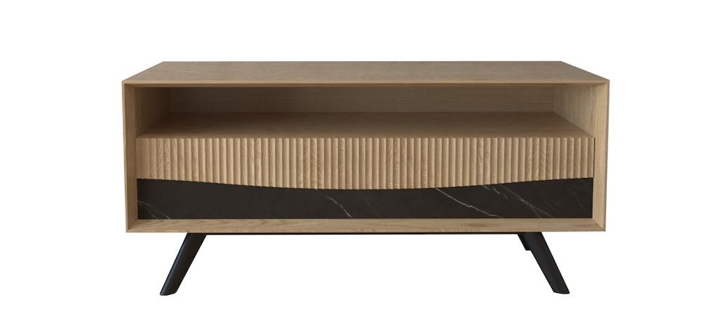 Meuble TV 2 tiroirs 1 niche bois et céramique