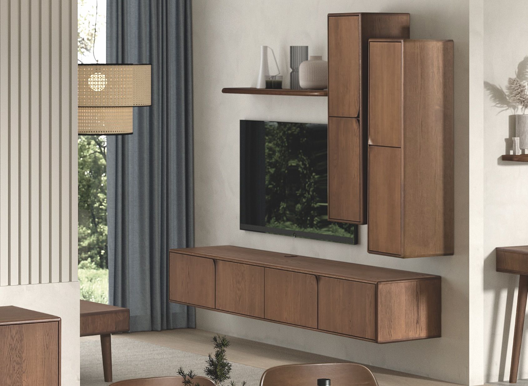 Misez sur l’originalité, l’élégance, et la praticité du meuble TV suspendu pour accueillir votre téléviseur et votre système audio. La forme minimaliste et les 4 teintes disponibles pour ce modèle : naturel, blanchi, marron et noir, en font le meuble parfait pour une multitude de styles décoratifs différents. Dans le petit espace salon d’un studio à Chalon-sur-Saône aux côtés de fauteuils d’appoint colorés il participera à créer une décoration vintage chic, dans le grand séjour d’un loft à Bourg-en-Bresse avec des meubles en bois et métal il apportera sa touche élégante dans un univers industriel… et pourquoi ne pas l’utiliser comme buffet 4 portes dans la salle à manger conviviale d’une maison de vacances du côté de Louhans ? Venez découvrir un grand choix de possibilité pour ce meuble TV réalisable sur pieds ou suspendu, dans des dimensions différentes, en version 4 portes, 3 portes ou 2 portes, avec portes pleines ou perforés…