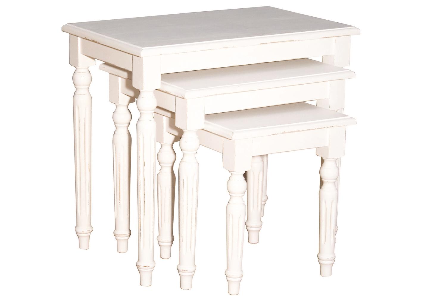 Petites tables gigognes aux pieds tournés en pin massif avec une finition antiquaire. Chic et élégantes elles apporteront du charme et de la douceur dans votre chambre. A côté de votre lit à baldaquin vous créerez une ambiance chaleureuse et cocooning. Disponible dans plus de 60 finitions