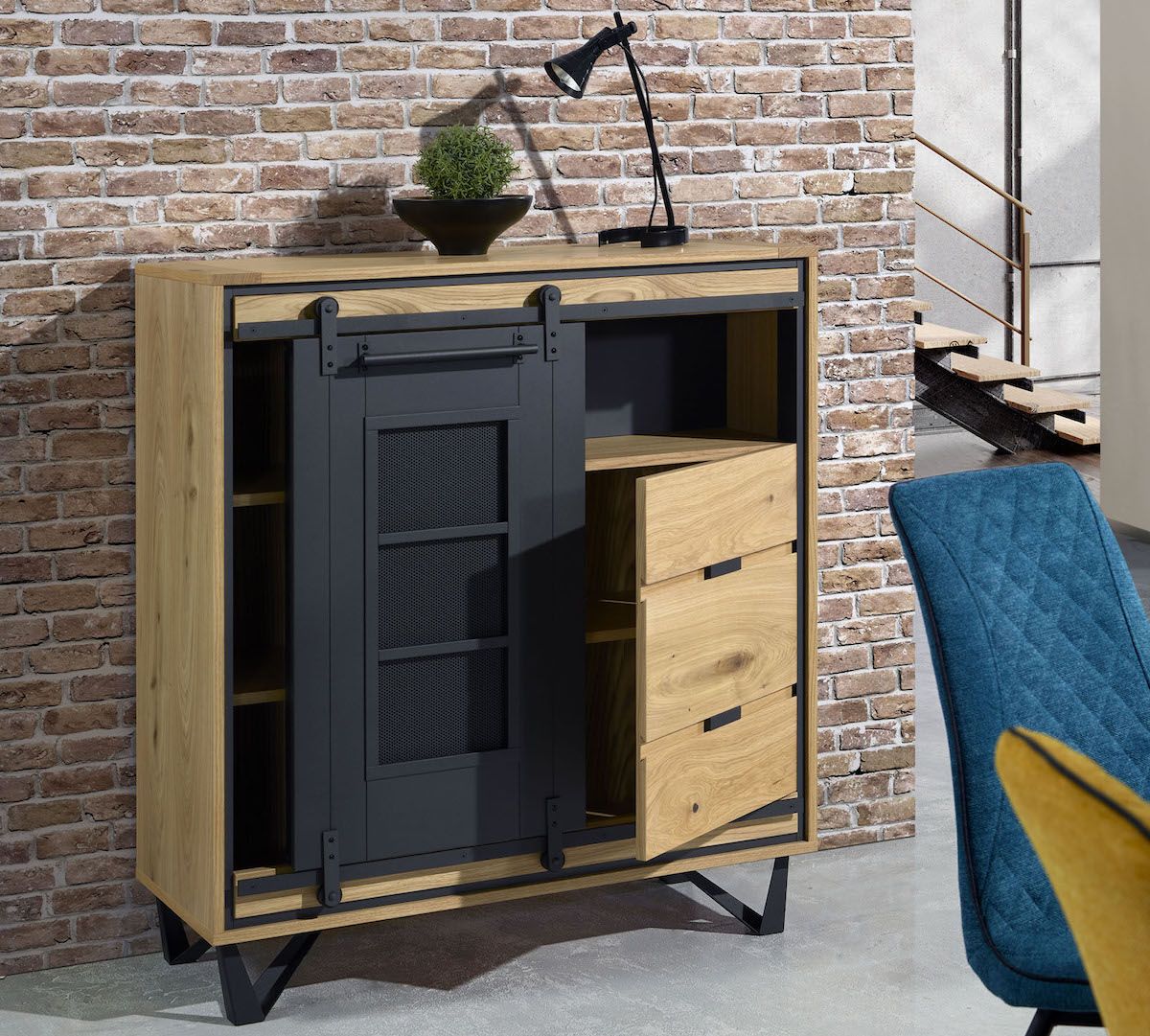 Enfilade inspiration industriel 3 portes 1 tiroir