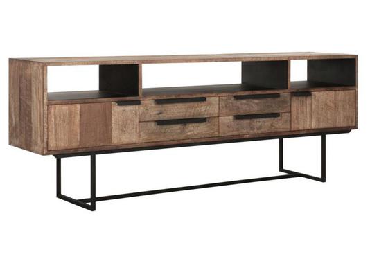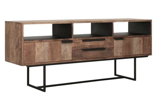 Meuble TV industriel avec portes et niches en teck