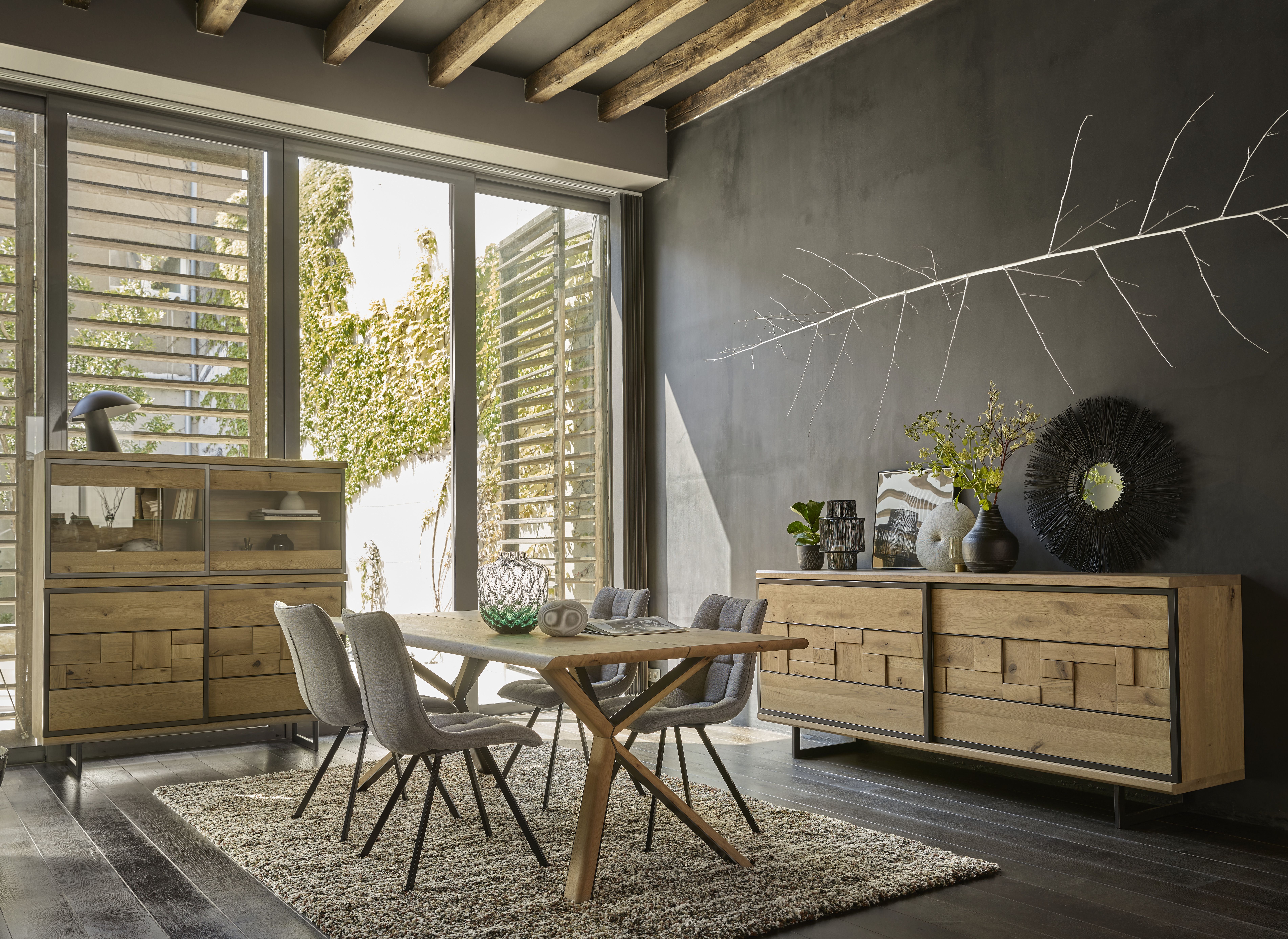 Cette enfilade s'intègre dans les intérieurs tendances à la déco naturelle comme dans les séjours à l'esprit indus'. Pour apporter du caractère dans votre pièce, elle mise sur une façade originale en bois qui dessine un puzzle géométrique en relief entouré par un cadre en métal. Pour l'aspect fonctionnel, ce bahut propose un grand espace de rangement avec une étagère derrière chacune des 2 portes coulissantes et la possibilité d'ajouter en option un tiroir intérieur. A côté de la table de repas dans la salle à manger, ce meuble de rangement sera idéal pour ranger les plats, la vaisselle et le linge de maison pour recevoir vos proches après une journée raquette aux Rousses.