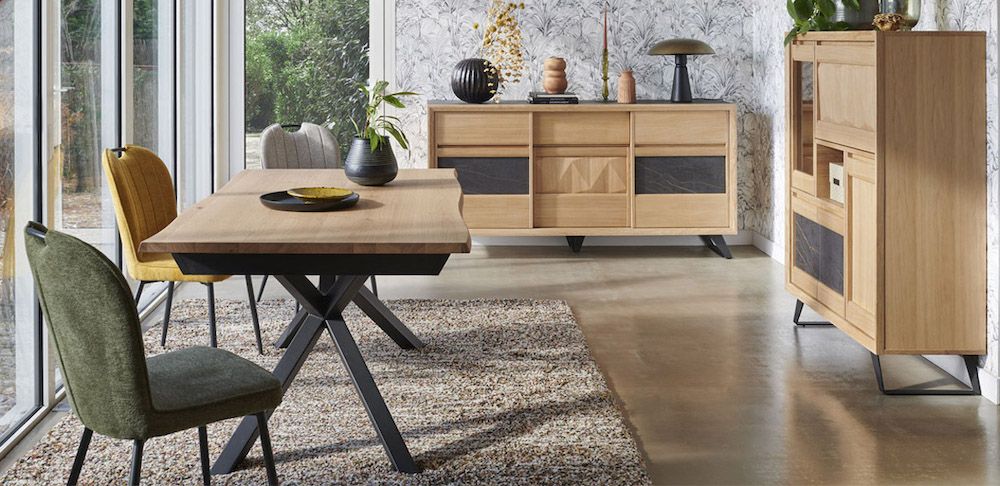 Remise supplémentaire en magasinVous venez d’aménager récemment dans une longère du côté de Louhans, une maison de ville en plein cœur de Beaune ou un appartement à Dôle ? Pour apporter une touche originale dans une salle à manger au style contemporain, industriel, classique-chic … laissez-vous séduire par cette enfilade. Elle marie avec beaucoup de goût la chaleur naturelle du bois et l’élégance moderne de la céramique grise pour vous offrir un meuble de rangement esthétique et pratique qui s'associe à différents styles de décoration intérieure. En + il est possible de personnaliser la façade de votre enfilade en choisissant la porte centrale avec incrustation « pointes de diamants » ou céramique. Derrière les 3 portes coulissantes de ce bahut se trouvent 3 tablettes réglables pour pouvoir ranger votre vaisselle et votre linge de maison, si vous le souhaitez l'ajout d’étagères est possible en option. Une autre dimension est disponible en 229 cm.