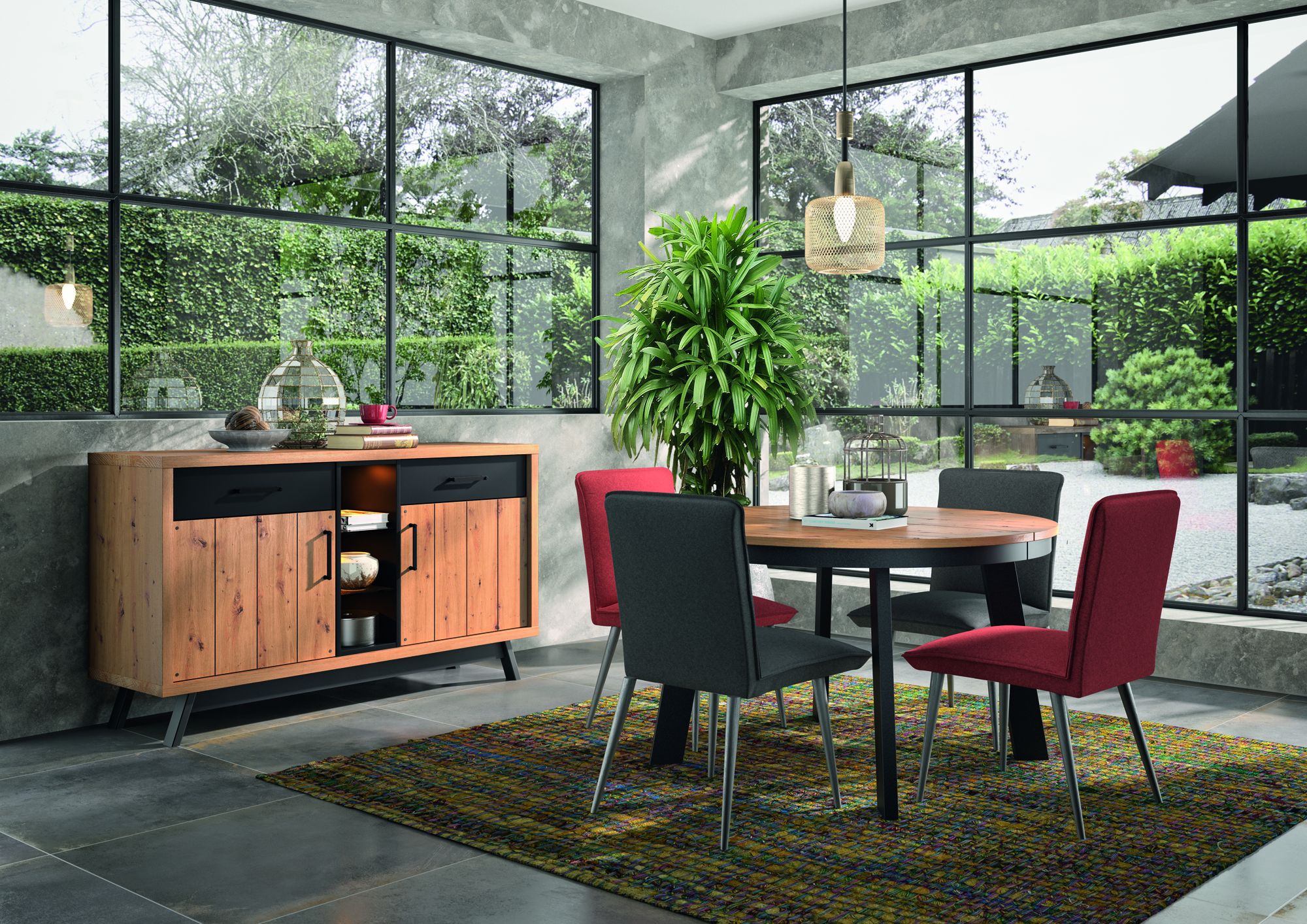 Dans un séjour, un salon, une véranda ou une entrée l’enfilade est le meuble de rangement par excellence. Aujourd’hui elle devient aussi une pièce de décoration élégante ! Ce modèle français, en mélaminé s’inscrit dans la tendance contemporaine avec des pieds métal laqué noir et des poignées noires. Pour la teinte vous aurez le choix entre le coté chaleureux du chêne sauvage ou l’esprit moderne du chêne nebraska grisé. Derrière ses 2 portes avec faux tiroirs vous trouverez une étagère amovible pour un rangement optimisé et pratique de votre vaisselle. Vous pourrez aussi ajouter en option 1 ou 2 tiroirs qui vous serviront à placer les couverts, sets de table ect… Le plus qui fera la différence, la niche entre les 2 portes est éclairée par un système Led, de quoi exposer vos plus belles décorations sur ses étagères vitrées. Si vous habitez des villes proches de notre magasin de Pierre de Bresse comme Dole, Lons le Saunier, Champagnole, Bourg en Bresse, Louhans, Beaune, Dijon, Chalon sur Saône, Montceau les Mines, Gray et Besançon, venez découvrir cette collection et discuter de votre projet d'agencement avec notre équipe.