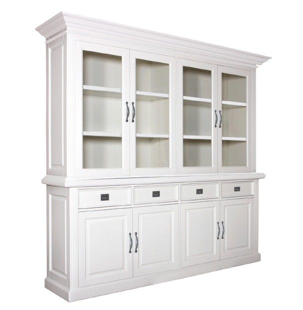 Vaisselier en pin massif 2 tiroirs blanc 1 porte vitrées