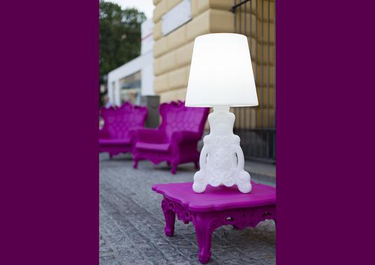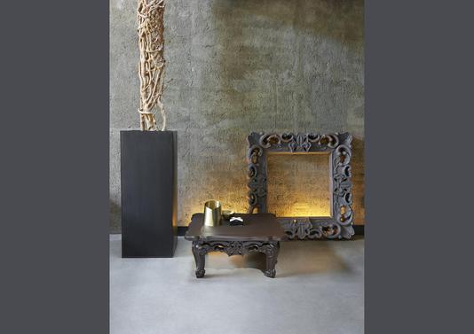 Cette table basse possède des pieds richement ornés dans un style presque baroque. Loin d'être classique, elle possède une structure en polyéthylène et un large choix de couleurs vives des plus modernes et contemporaines.