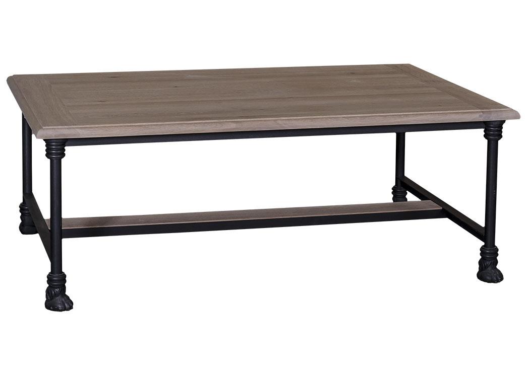 Table de salon en chêne massif et métal avec barre cantrale croisées. Disponible dans 11 coloris