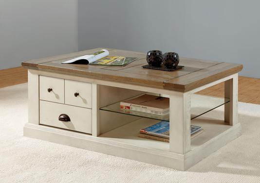Remise supplémentaire en magasinSon style traditionnel, son côté classique seront vous séduire. Cette jolie table basse réctangulaire donnera à votre salon un esprit cosy associé à sa gamme de teinte qui vous permettera de la choisir en bi-ton ou en teinte seule. A vous de personnaliser votre meuble. Pour vous donner un peu de rangement, elle dispose d'un tiroir et d'une tablette en verre.