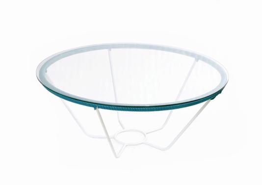 Cette table basse ronde possède une structure en métal et un plateau en verre soutenu par un cercle de tissage en PVC haute résistance à mémoire de forme traité contre les UV. Fabriquée en France, cette table est 100% recyclable. Retrouver la grande version de cette table Réf : 13238