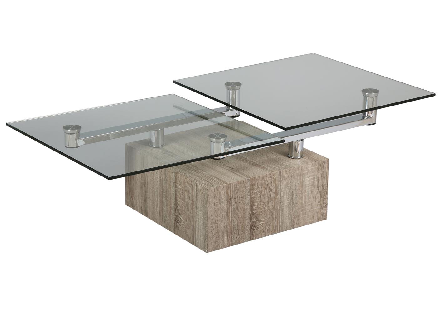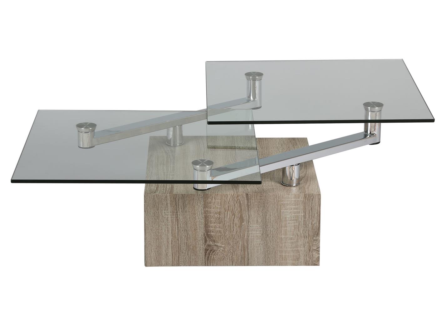 Table de salon plateau verre pied mélaminé