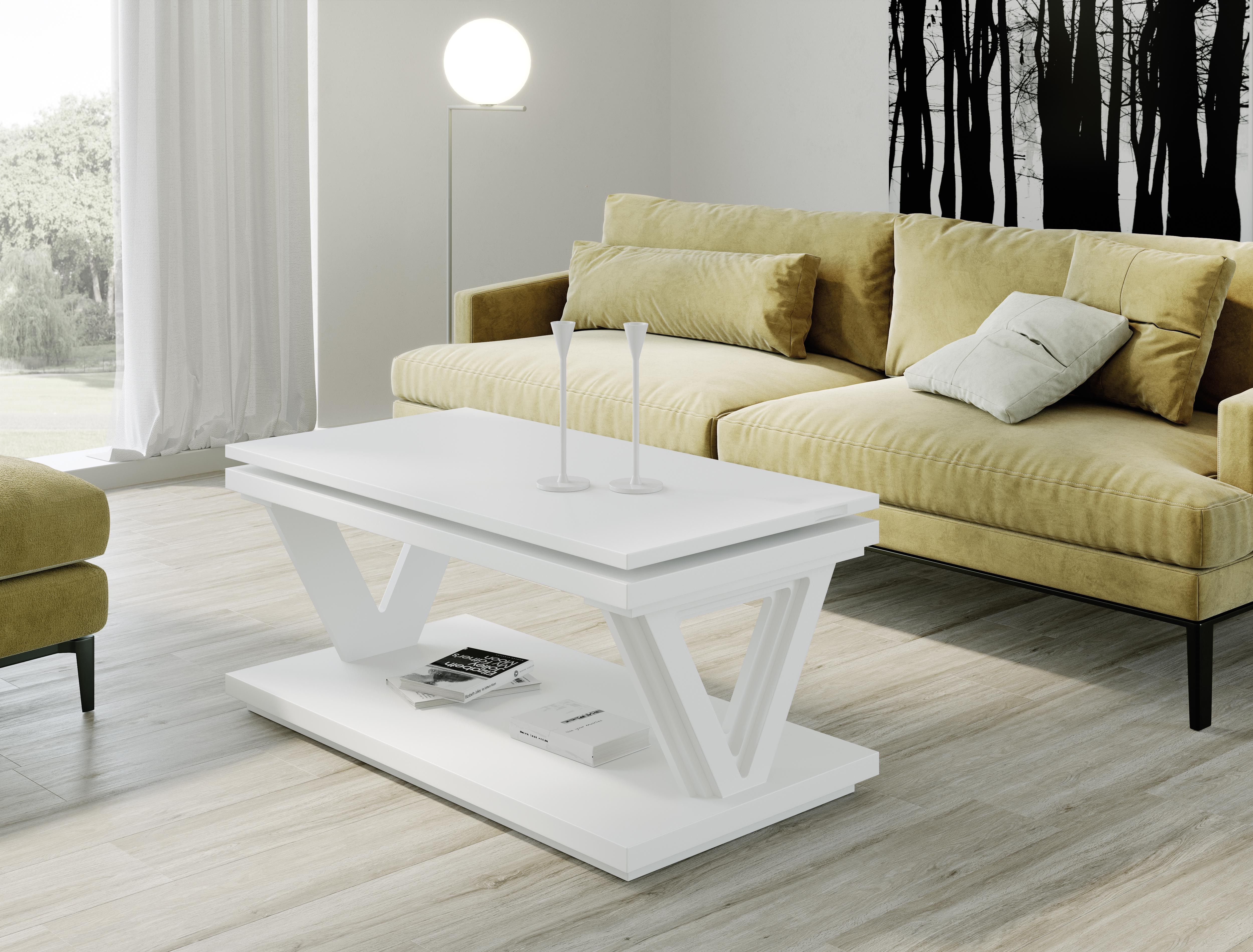 Table basse dinette blanc laquée pieds en V