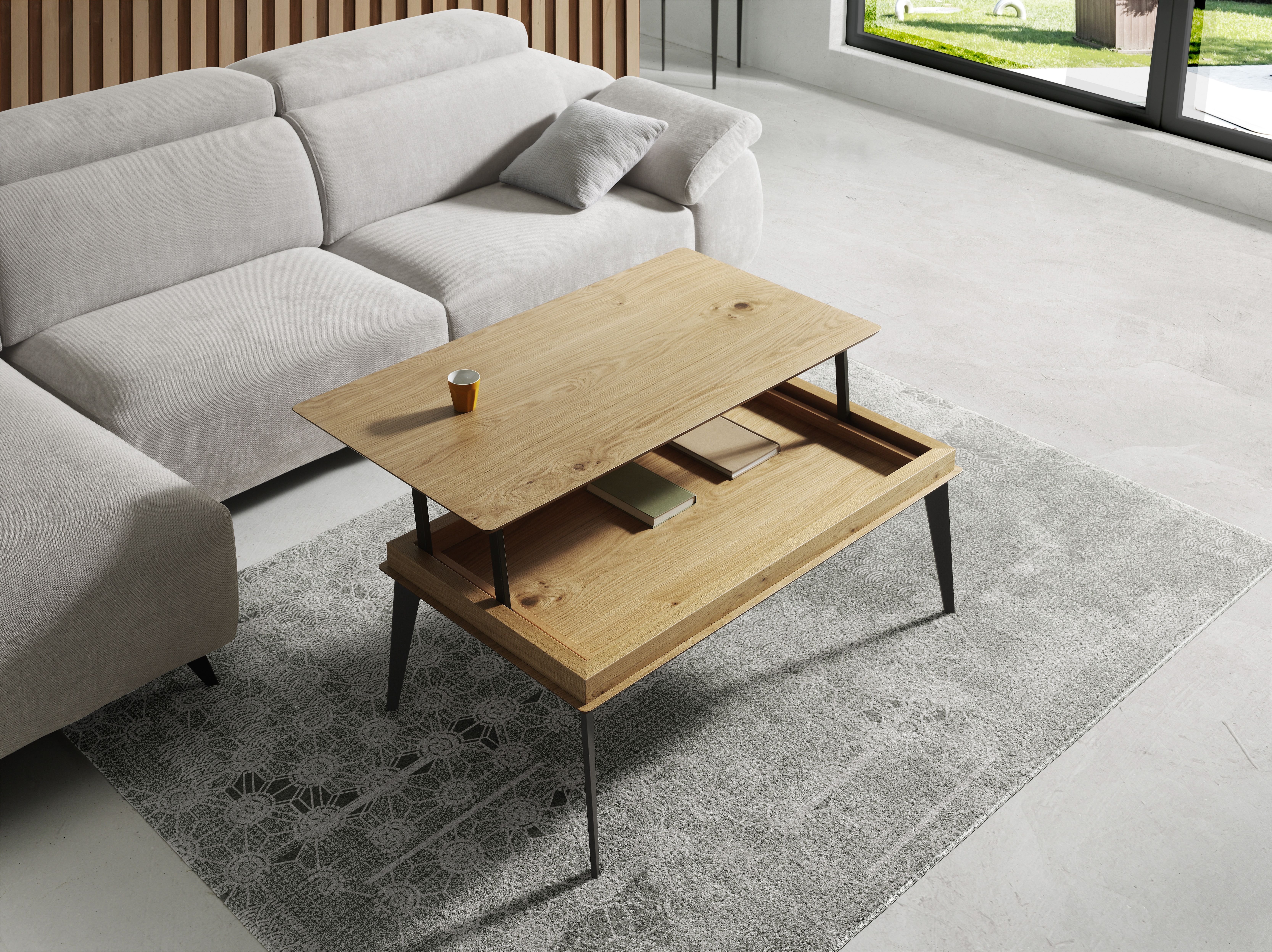 Table basse plateau relevable verre ou céramique
