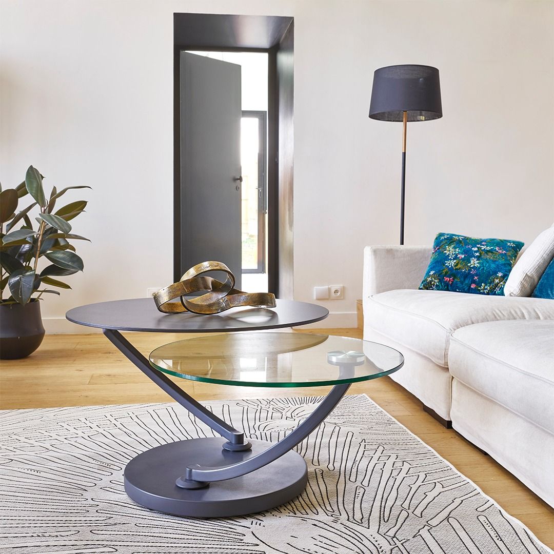 Recevoir ses amis pour l’apéritif dans votre nouvel appartement au centre-ville de Beaune devient un véritable plaisir avec cette table ronde pivotante ! Pour passer facilement d’une petite table de salon peu encombrante à une grande table d’apéritif, il vous suffira de pivoter les deux plateaux. Cette magnifique table avec plateau céramique avec son socle design en métal et ses deux plateaux en verre et céramique saura trouver sa place dans un intérieur contemporain comme classique pour apporter une touche moderne et fonctionnelle. Créez une table à votre goût en choisissant entre plusieurs finitions et coloris de plateau bois, céramique ou verre. Parcourez les 30 min qui vous sépare de Dole-Choisey, et venez l'admirer dans notre magasin de Pierre-de-Bresse !