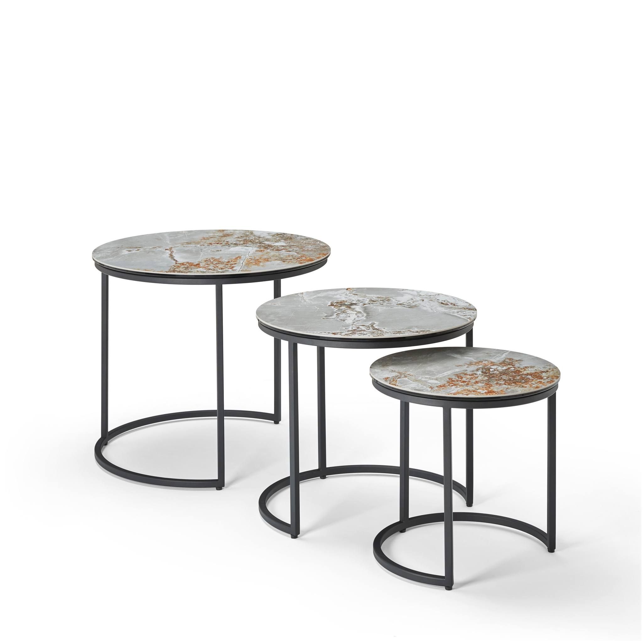 Vous êtes à la recherche d’une table basse pour meubler avec style le petit salon d’un appartement à Beaune ? Laissez-vous tenter par ces jolies tables gigognes en métal et plateau céramique originale. Faciles à déplacer et empilables, elles pourront être rangées facilement lorsqu’elles ne servent pas. Vos amis de Chagny débarquent pour un apéritif improvisé ? Rassemblez les 3 plateaux de tailles différentes pour déposer vos boissons et vos spécialités. Dans un grand espace séjour, son look minimaliste et contemporain s'associera volontier avec une table basse déjà présente pour agrandir votre espace repas.