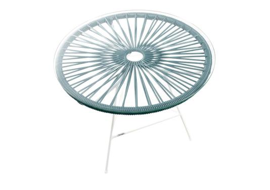 Petite table basse ronde avec dessus de verre et tressage
