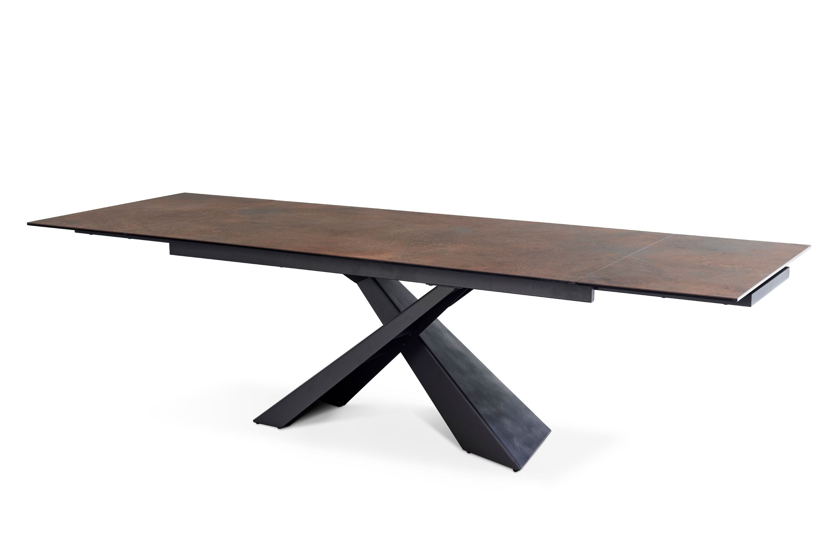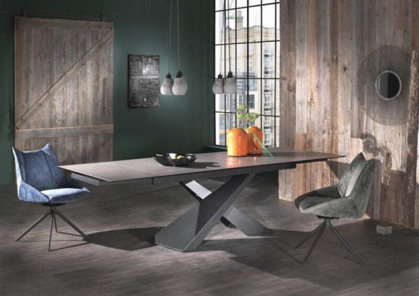 Succombez au style original de cette table de repas contemporaine ! Conçue pour la salle à manger, pouvant faire office de table de repas, de bureau, de lieu de partage en famille … cette table graphique associe un plateau full céramique, décliné en deux coloris : anthracite ou bronze, à un piètement métal géométrique, finition poudré noir, pour créer une pièce atypique qui retiendra certainement l’attention de vos convives venus partager un apéritif aux saveurs bressanes ! Avec cette table, les invités surprises seront les bienvenus grâce à son système à 2 allonges de 50cm aux extrémités pour passer d’une tablée de 180 à 280 cm ! Ce modèle est à venir découvrir dans notre magasin de Pierre-de-Bresse, à 30min de Louhans.