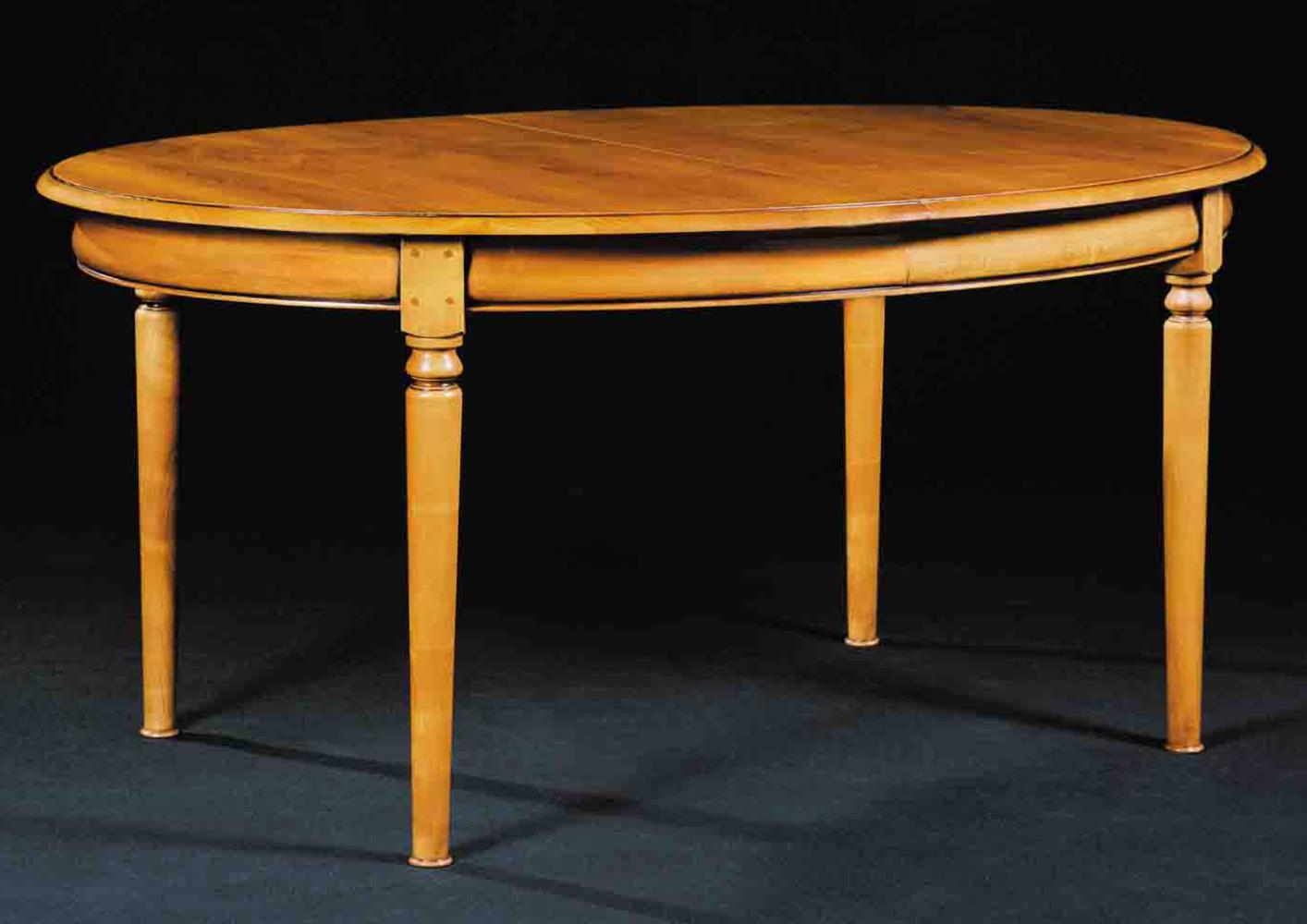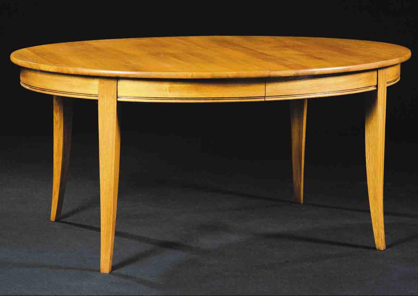Table ovale 4 pieds, jusqu'à 6 allonges de 50 cm