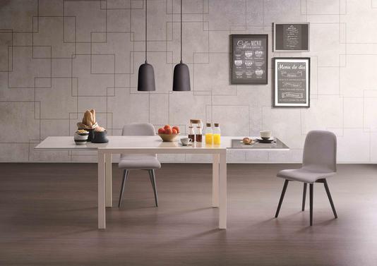 Cette table rectangulaire avec son plateau laqué et ses pieds en métal. Dispose d'une allonge de 120 cm .Sur la partie latérale du plateau, on peut voir des rayures de couleurs pour rompre avec l'aspect simple de cette table et en faire un élément de décoration à part entière. Ce modèle est en cours de suppression chez notre fournisseur. Nous consulter pour les disponibilités.