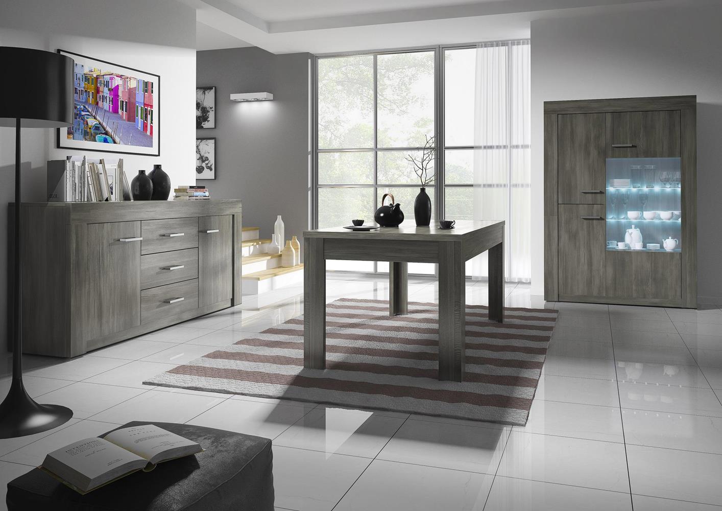 Table de salle à manger gris foncé en L160 ou 180 pour acceuillir de 6 à 8 couverts. Disponible dans une teinte cérusé claire avec 1 allonge de 50 cm voir ref 11481