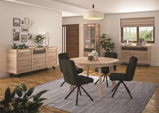 Cette table ronde vous séduira avec ses pieds taillés en oblique .Elle posséde une allonge centrale de 50 cm en portefeuille. Elle se transforme alors en table ovale de 175 cm . Sa teinte en chêne tronçais s'assortira parfaitement dans tous les intérieurs actuels.