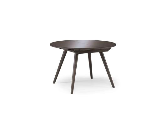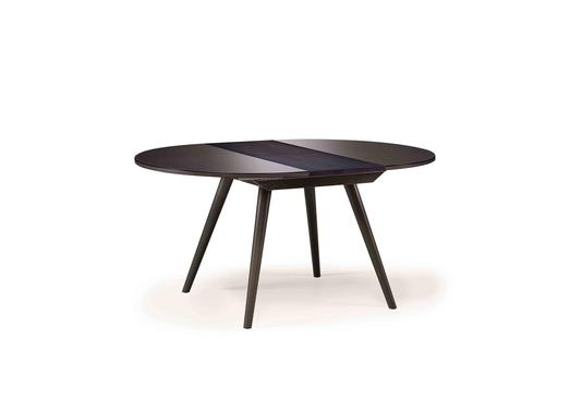 Table ronde avec 4 pieds obliques et une allonge