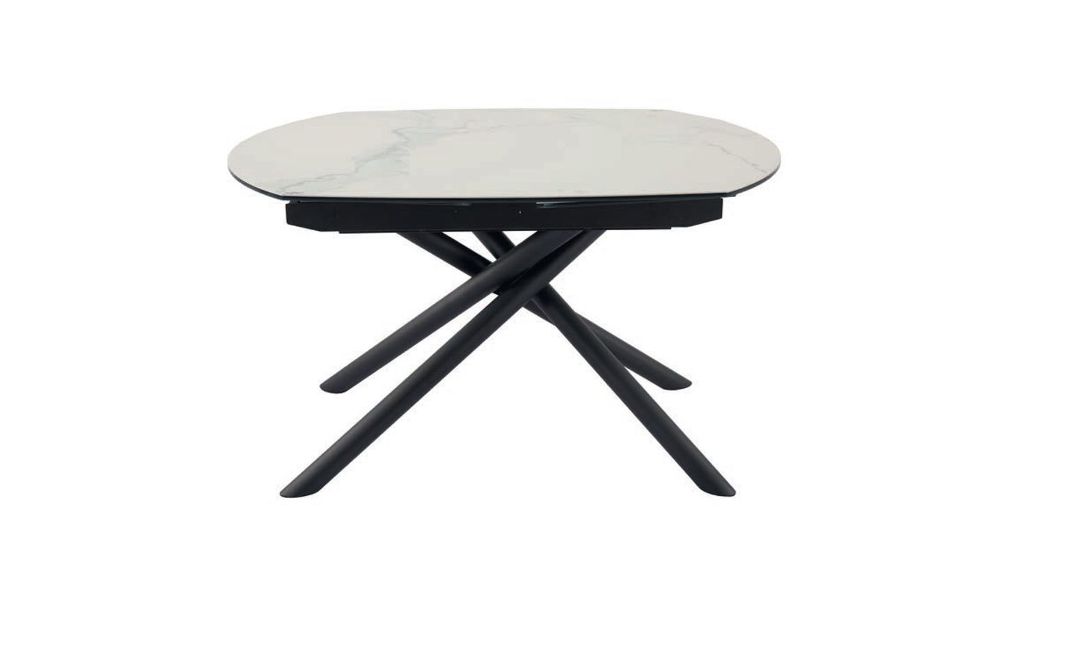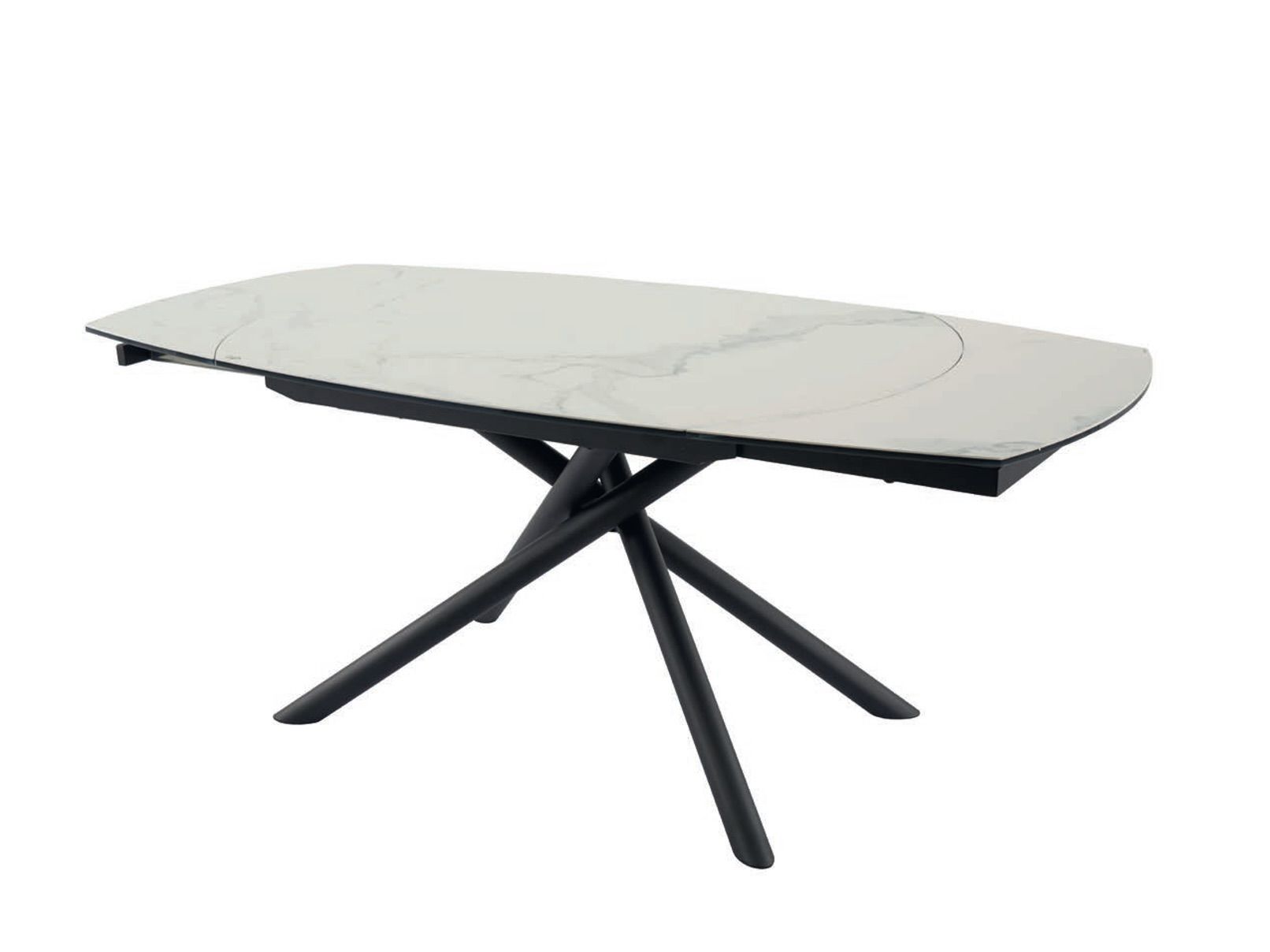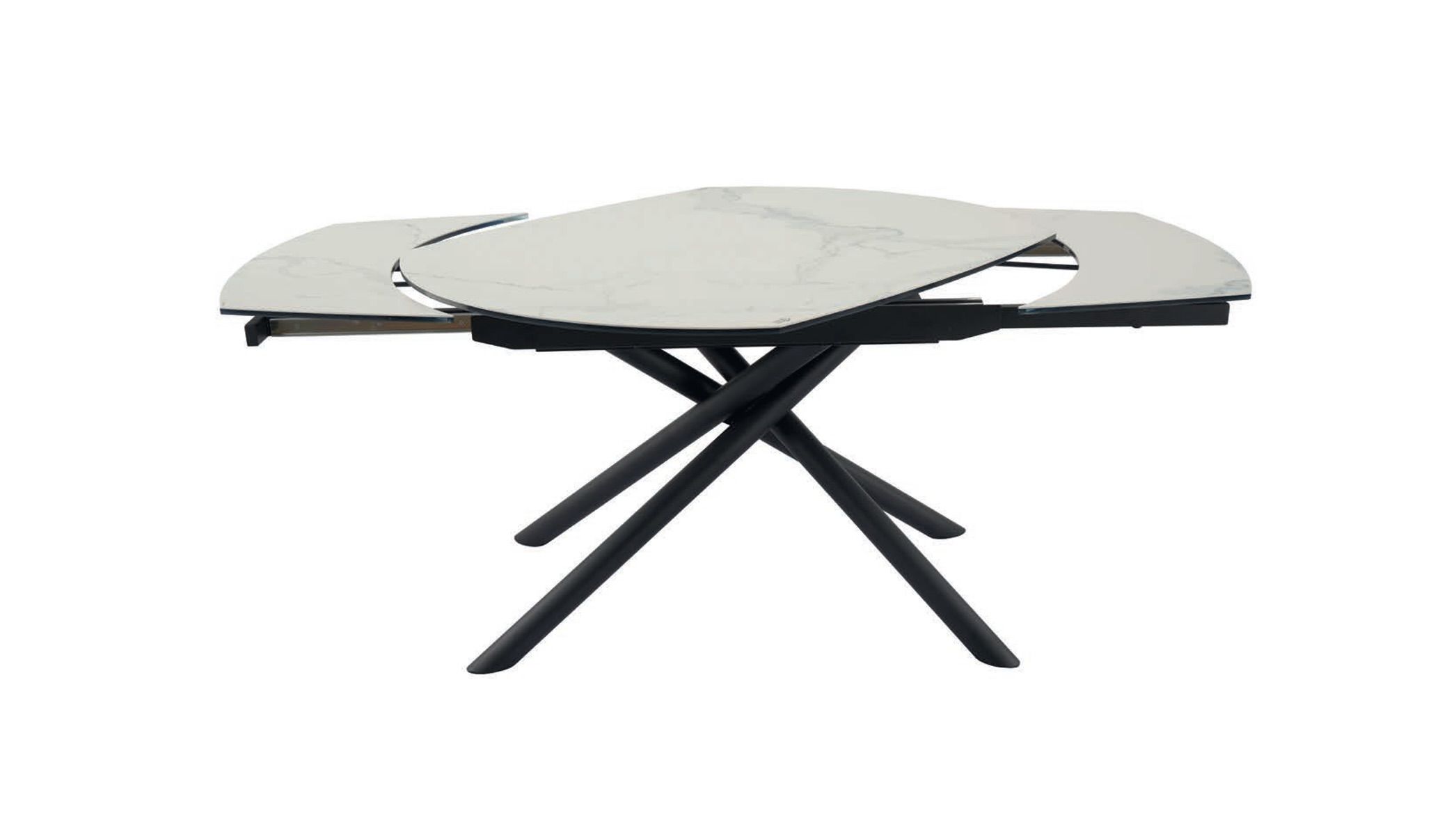 Table avec allonges plateau céramique blanc marbré