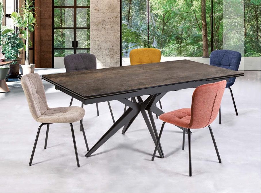 Table céramique avec 2 allonges pieds épingle en croix