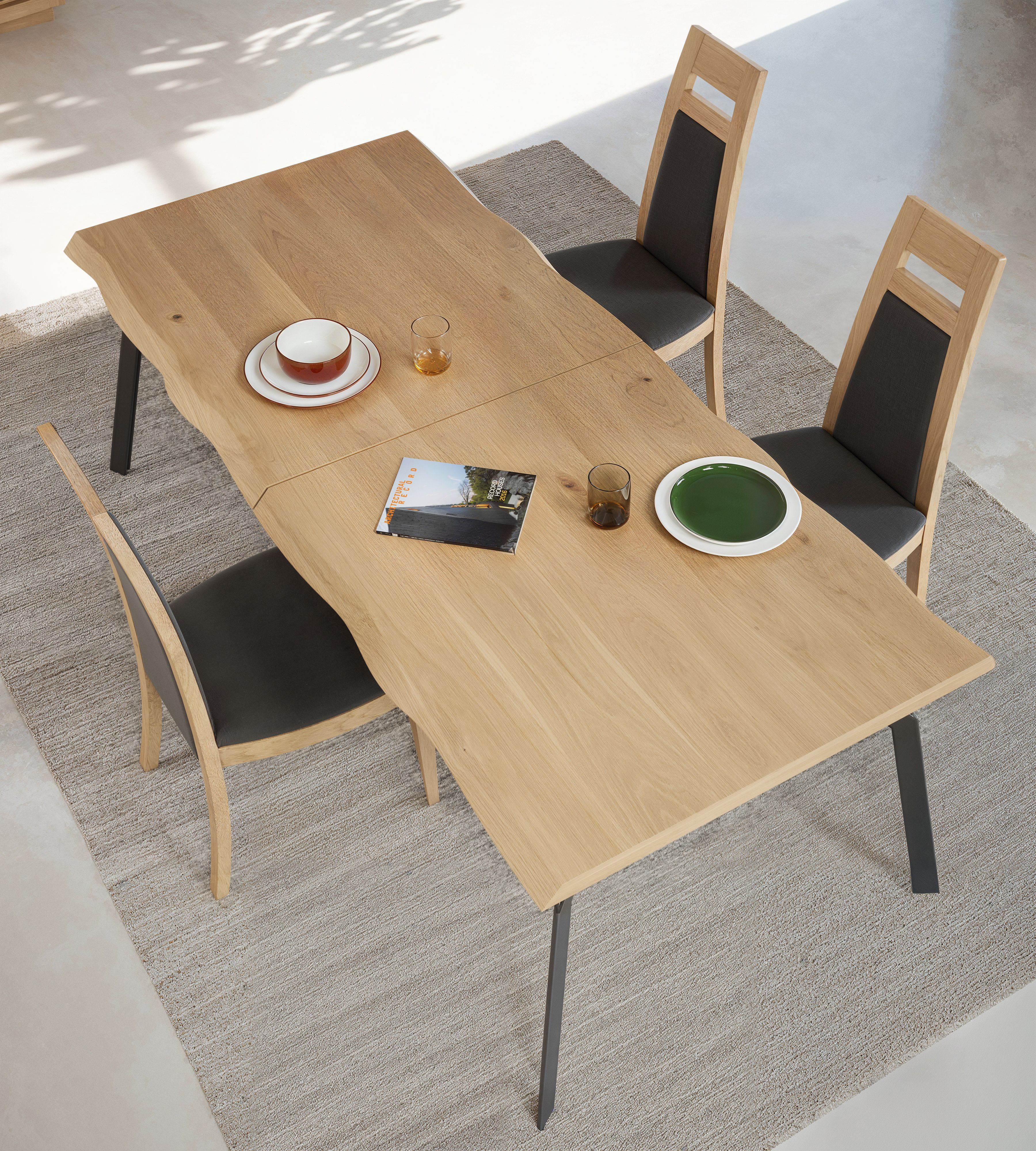 Table de repas 1 allonge avec plateau bois aux bords irréguliers