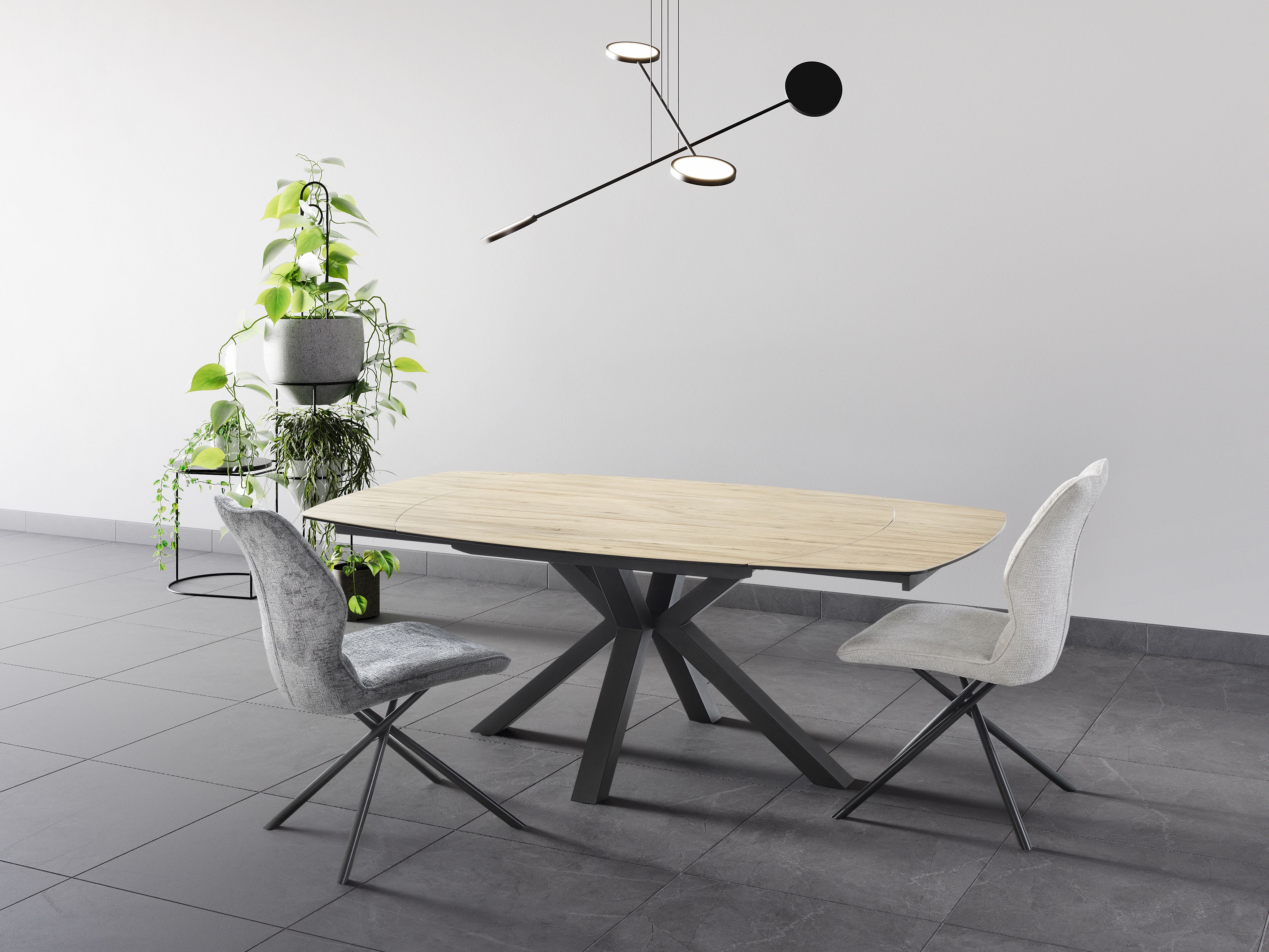 Repensez la décoration de votre salle à manger autour de cette jolie table de repas ovale et recevez avec convivialité vos amis ou votre famille venus vous rendre visite en Côte d’Or ! Praticité et élégance sont de mise avec ce modèle dont le plateau ovale pourra s’étendre jusqu’à 200 cm grâce à 2 allonges au bout. Sa silhouette moderne se compose d'un pied étoile métal et d'un plateau en céramique disponible en 2 couleurs bois naturel ou anthracite, il sera donc facile de l'associer avec plusieurs styles de mobilier et de chaises. Que votre décoration soit chic, baroque, ambiance nature ou rustique, laissez-vous séduire par l'idée de cette table ovale pour un coin repas des + confortable et accueillant.