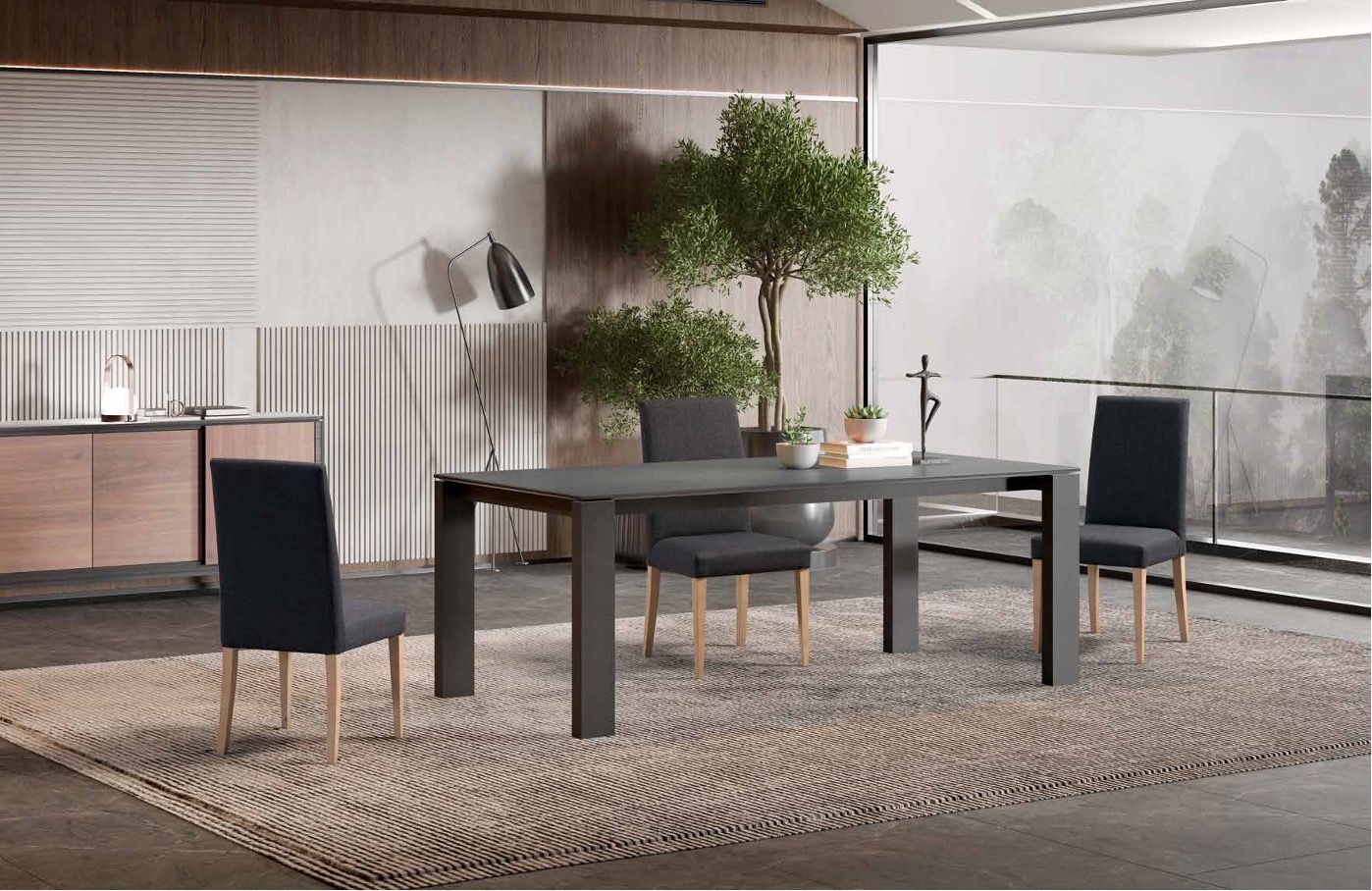 Table rectangulaire plateau céramique pieds métal
