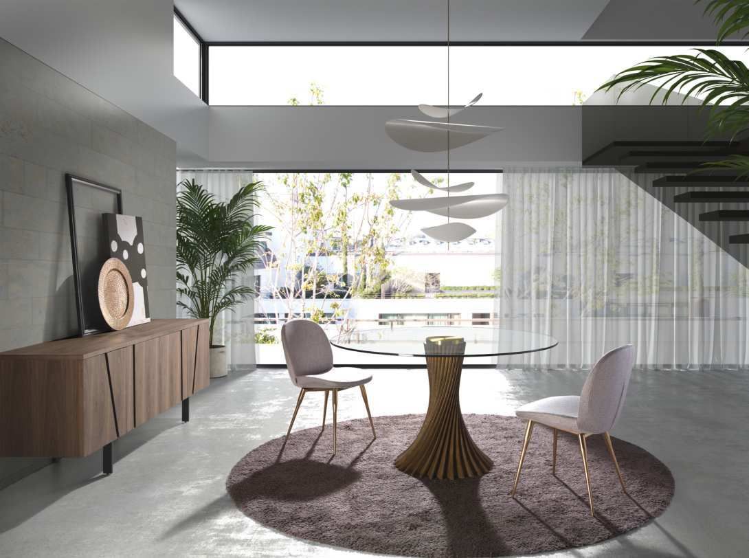 Cette table ronde va faire la différence dans votre espace repas ! En combinant un plateau en verre et un pied original sculpté en noyer, son design attirera le regard de vos amis et votre famille venus pour la crémaillère de votre maison à Mâcon. Une fois installés sur de jolies chaises pivotantes afin de déguster une fondue savoyarde la convivialité dû à la forme de son plateau rond ravira les convives que vous pourrez accueillir jusqu'au nombres de 6. Cette table sera parfaite dans une déco scandinave avec d'autres meubles de salle à manger en bois, dans une déco contemporaine avec des meubles laqués, dans un univers design avec une enfilade en bois sculptée.