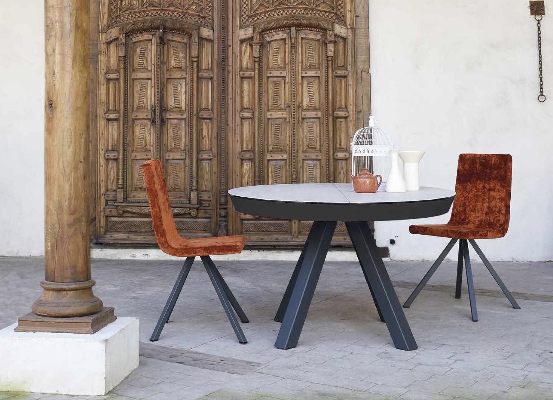 Venez découvrir cette table ronde design avec plateau dekton et pieds métal chez Simeuble à Pierre de Bresse proche de Dijon, Dôle, Besançon et Mâcon.