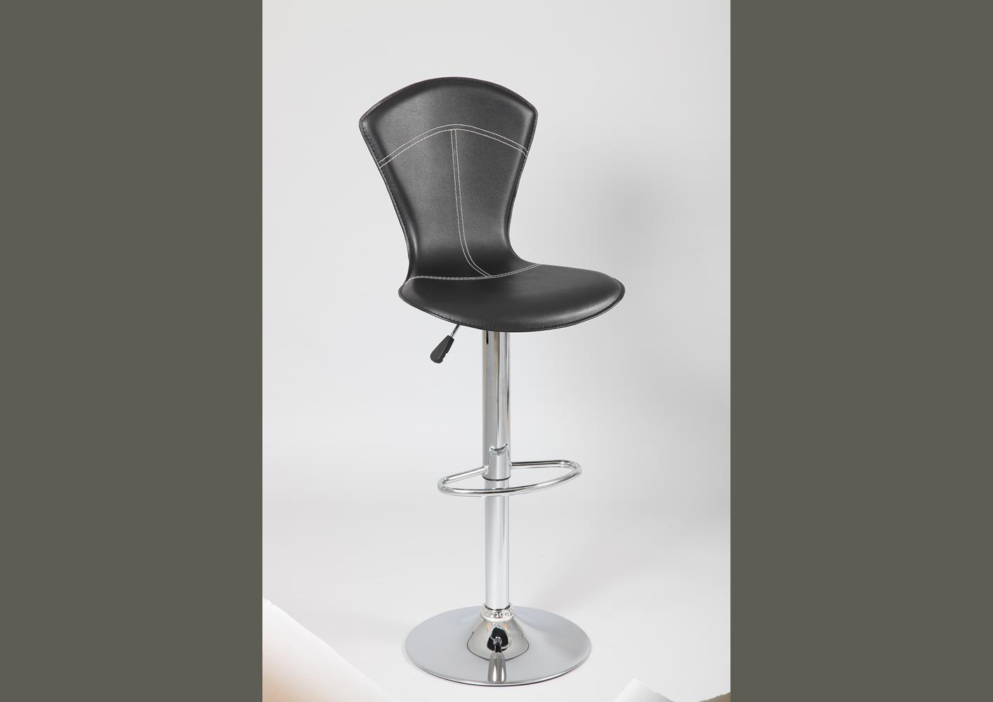 Tabouret moderne assise pvc noir coutures blanches