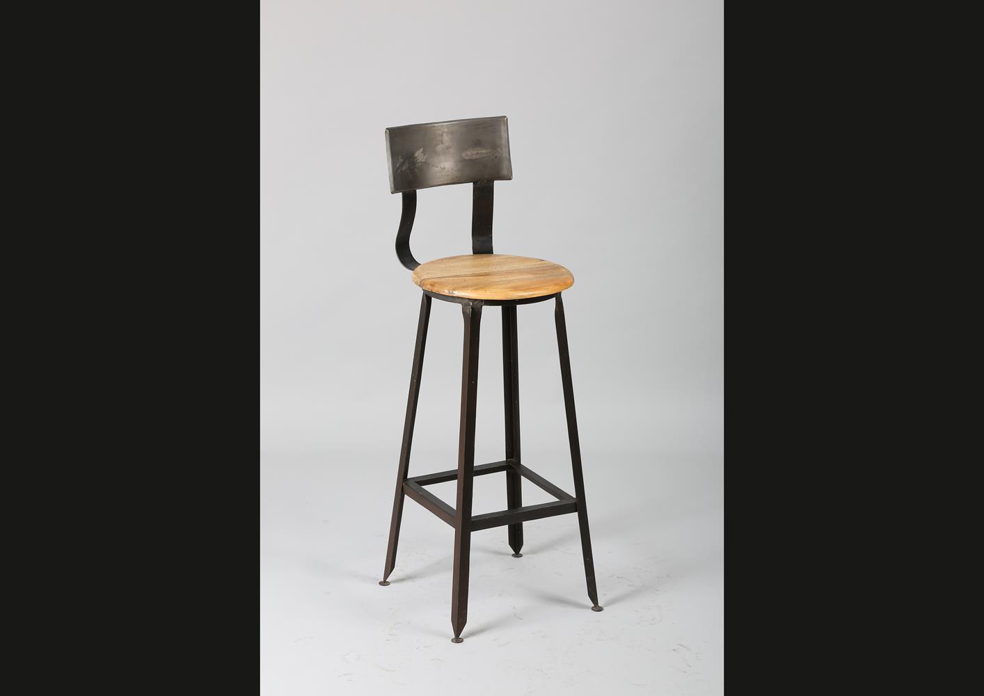 Tabouret de bar style atelier associant le charme du bois et l'authenticité du métal. Imaginez le devant un beau bar en métal orné d'un plateau en chêne massif pour créer un espace chaleureux et convivial.